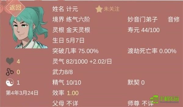 《某某宗女修修炼手札美化版》是一款以放置为核心的休闲扮演类修仙游戏,玩家需通过与NPC互动提升战斗数值、征服对手,其中“种豌豆”(生育)攻略要求挑选无心上人、好感≤60的低阶修士,通过“拜访”触发“意动事件”完成授粉,喂辟雷符将死亡率降至0%,一对夫妻最多生3个孩子且男女比例1:1,若颜值或性别不符可通过“处理”父母重刷;获取阳气需撩不同境界修士,推到强者提升数值;修炼需优先用元阳升级“上善诀”至30级解锁妖修、60级解锁魔修,依赖药王谷弟子送丹药、星机阁弟子送辟雷符(送人加好感)、妙音门弟子提升突破几率,还可探索十万大山rua妖修、大自在殿嫖高元阳(需百年准备),游戏以创意修行方式、丰富门派功法及玄奇仙灵大陆探索为亮点,v2.68版本修复了部分逻辑错误。