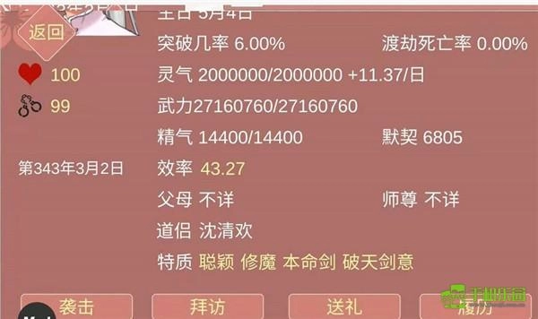 【突破几率】和妙音门弟子加好感有几率增加,或者磕药,药王谷弟子加了好感会送丹药给你,不过是随机的