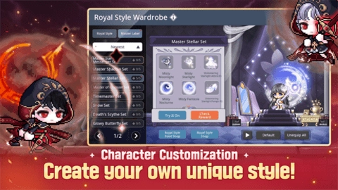 通过多元化的时尚内容打造个性化装扮,与各国玩家争夺排名和武陵道场等游戏内容,和朋友创建或加入公会后挑战史诗级妖王,探索弓箭手村、勇士村、魔王城、魔物森林等熟悉城市相关场景。