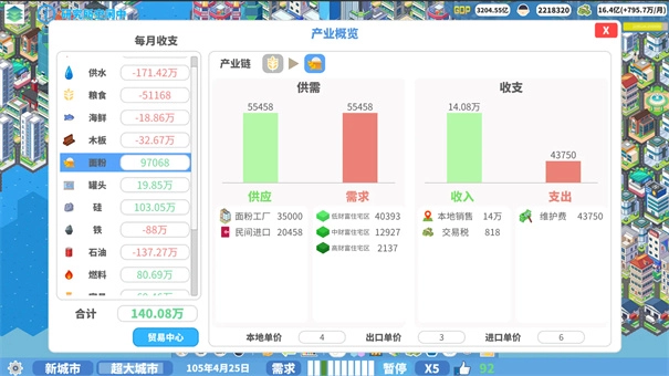 城市发展遵循完整的经济与产业规律,住宅、工业、商业并非独立存在,任何一环失衡都会影响整体运转,从人口供给到生产制造,再到商业消费与对外贸易形成清晰闭环,产业布局是否合理直接决定城市的成长速度与财政收入,地价会随着区域发展、配套完善程度不断变化,高价值地段既是财富来源也意味着更高的运营成本,前期资源紧张、中期调整结构、后期规模爆发,每一个阶段都有不同的策略重点,城市成长路径清晰且可控,道路走向、区域划分、建筑摆放均由玩家决定,没有固定模板,城市形态完全取决于玩家的思路与取舍。