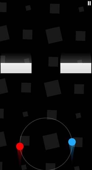 1、游戏开始后,玩家需要同时控制画面左右两侧的两个圆点,圆点会持续向前移动,无法停下。