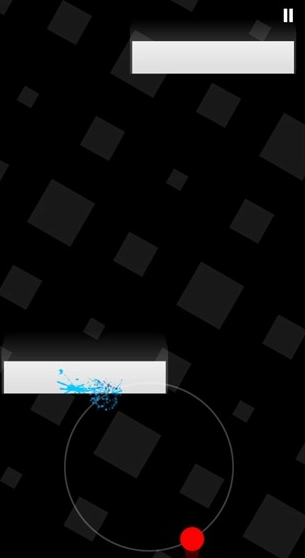 2、前进过程中会不断出现不同形状的墙壁障碍,玩家需通过屏幕两侧的操控条,灵活移动圆点位置,及时躲避障碍物。