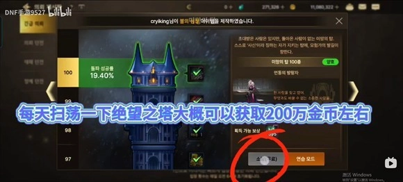 3、每天刷一下绝望之塔,大概能拿到200万金币上下,要注意塔的抗魔提示只是建议数值,就算抗魔低于这个标准也能进去挑战。