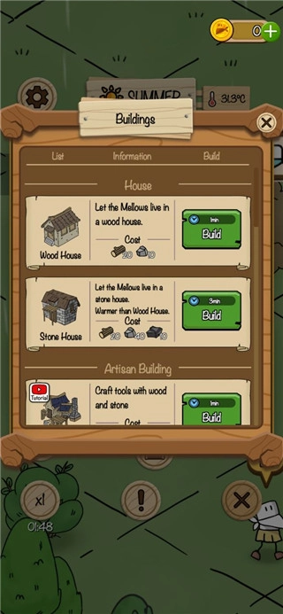 5、选择喜欢的房子样式进行建造,并开始种植作物与收集各类资源。