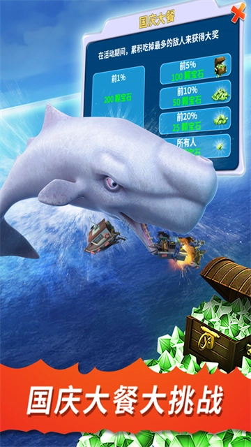 2、自由选择丰富的鲨鱼种类,自由冒险多个任务场景,用实力征服整个大海。