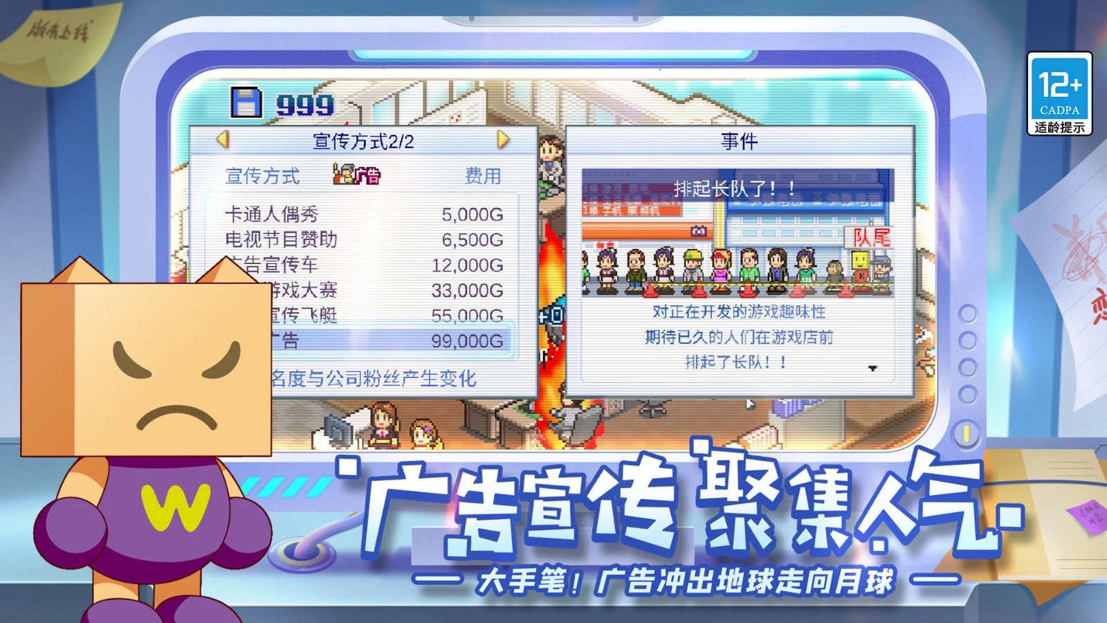 《游戏发展国》(GameDevStory)单机老版本是一款像素风模拟经营养成休闲游戏,玩家需通过点击与拖动操作完成游戏开发全流程,可选择动作、冒险等类型及自定义题材,首款游戏至关重要(影响后续公司发展),需依据市场需求调整策略,通过参加游戏比赛赢取奖杯、售卖游戏盈利,当公司规模扩大至可容纳更多员工的办公室(如从中办公室升级到大办公室)、满足上市解锁要求后,可集资上市,其中游戏开发成功率、市场受欢迎度等百分比数值直接影响收益,独特的“头洞作品”创作机制与沉浸式像素场景、轻松配乐结合,让玩家深度体验游戏公司从初创到上市的经营历程。