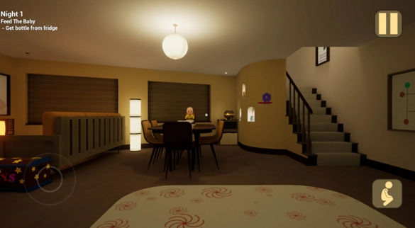 进入房间先熟悉地形与可交互物品,关键道具与线索常藏在柜子、抽屉等隐蔽位置,做育儿任务时保持注意力,婴儿会突然移动或消失,提前预判能减少被惊吓的概率,听到异常音效或看到环境变化时立刻停下观察,不要盲目乱跑浪费操作时间,按章节顺序逐步推进,完成当前目标再探索其他区域,避免因路线混乱导致卡关。