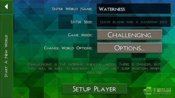 4、点击“new world”后,我们需要对创建世界,进行自定义的设置,设置完成后点击“setup player”