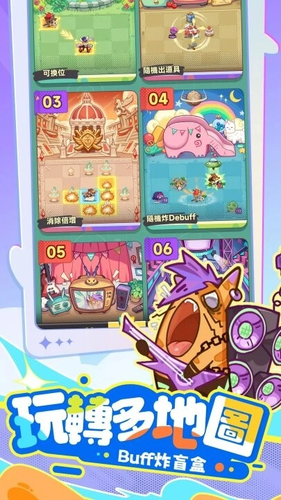 4、【多地图趣玩,Buff盲盒惊喜不断】每一张地图都配备独特机关与隐藏Buff,随机奖励结合策略运用,助你轻松实现反杀翻盘!