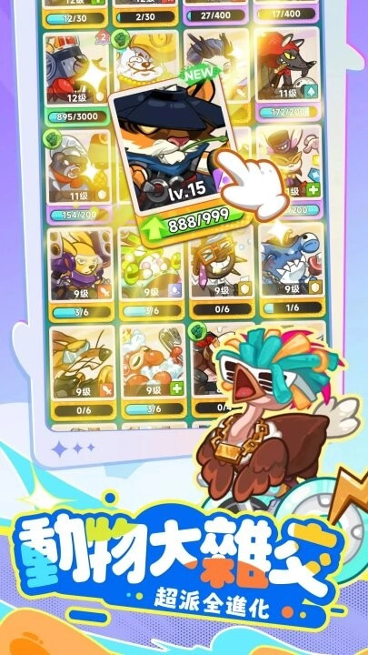 3、百种超派兽兽乱斗开打!呆萌变异卡皮胖达、肌肉爆击老狮基…搞怪进化路线每次都有惊喜!