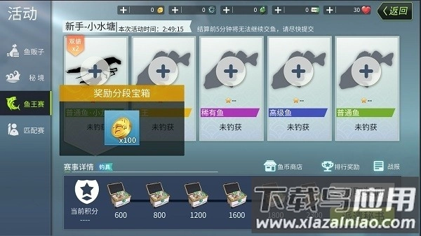 每个赛区的任务类型相似,需要提交指定普通鱼、高级鱼、稀有鱼、鱼王鱼各一条,并随机选择该水域一种鱼作为双倍积分鱼。