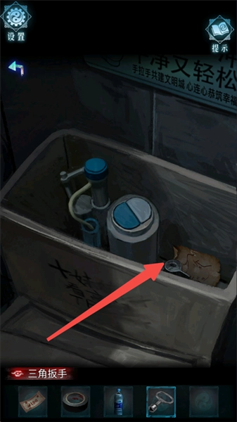 7、叉子挖厕所垃圾桶上面花盆的土,获得三角板手。