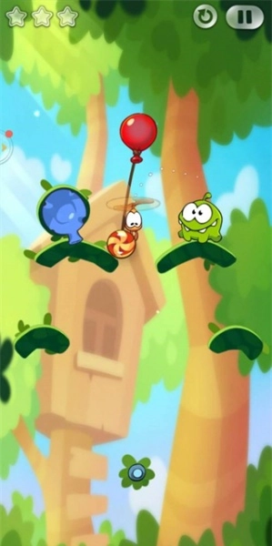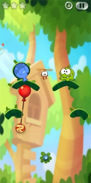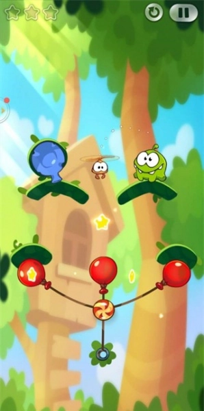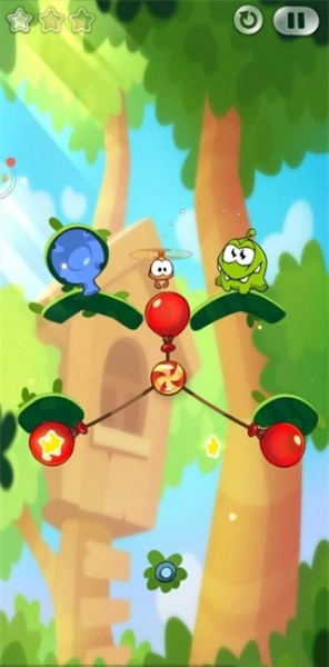 1、和之前的版本相比,依旧是简单又烧脑的操作,不过这次主人公不再是孤军奋战啦,它有了小伙伴陪着一起割绳子