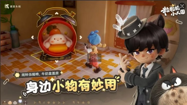 你在睡梦中意外缩小成约5厘米高的“心想家”,身处由日常物品构成的微观小人国摇粒乡,拥有专属基地星畔家园可自由搭建、装修、种田,场景涵盖书桌、窗台、房间、客厅、摇粒乡、暗星区等区域,生活着性格各异、有独立剧情与喜好的粒粒,能通过日常物品二次利用实现微缩美学,采集阳光、晨露等用于种田、烹饪、制作道具,与粒粒互动提升好感邀请入住,无固定玩法可自由创作专属微观生活。