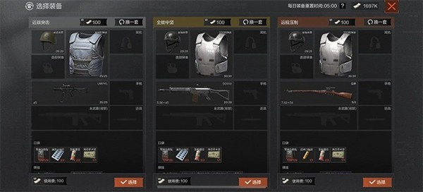 根据选择的模式不同,可以选择对应模式强度的三种不同作战风格的初始装备。进入战局将花费一张对应模式的入场券。