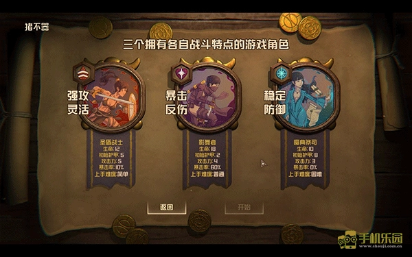 游戏内共有3个不同的角色以及相应的两种天赋技能