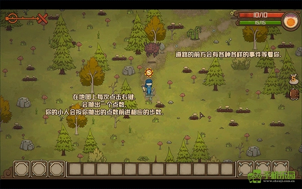每次前进以及遭遇某些事件时会消耗体力,当体力为0时会发生一些负面事件,所以记得喂饱自己吧。
