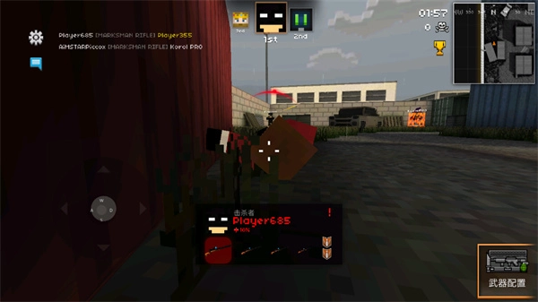 《像素突击3D》(PixelStrike3D)是一款融合经典像素风格与现代射击玩法的多人在线游戏,玩家可通过选择初始皮肤创建角色,进入Quickplay等模式,利用左下角移动键、右下角开枪/跳跃/瞄准键操控角色,在70余种专属武器(含狙击手、机枪、光剑等)及消音器、红点瞄准器等附件的支持下,参与团队死斗、夺旗、拆弹等竞争模式,还能体验躲避球、猎鸭等迷你游戏;游戏中所有物品无需购买,仅通过游玩获取,玩家可升级角色解锁新装备、用皮肤创建器自定义形象并分享设计,建立部落设计徽标冲击排行榜,其像素3D画面既降低硬件要求又提供独特视觉体验,快节奏战斗与真实物理引擎结合复杂地形,让玩家在每局可复活的对战中,通过消灭敌人、收集材料提升战斗力,最终依据结算表现获取奖励,打造集自定义、竞技性与趣味性于一体的射击盛宴。