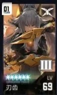 刃齿:万金油打手,几乎无可争议的T0,既可以对单又可以对群,伤害利用率拉满的角色,练了准没错,无论是常规刷本还是逃课主线,刃齿在队伍里都有一战之力。带7阶段活动给的R4物理套就够用。