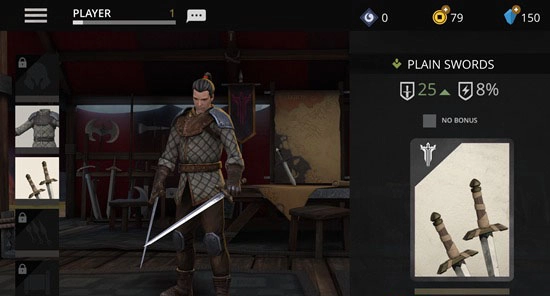 游戏中我们可以对自己的角色进行装备武器的佩戴,已达到提升角色防御和伤害的效果,这与暗影格斗2的装备系统基本相同。
