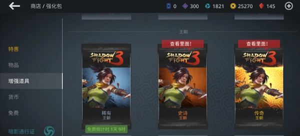 3、玩家可以通过四种方式购买和升级这些物品:游戏内商店,作为任务奖励,或者打开宝箱和补充包。可以使用三种主要类型的货币来促进此过程:硬币、宝石和影子能量。