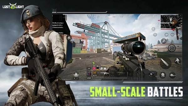 1、首先打开萤火突击国际服,即Lost light,点击右侧语言按钮;