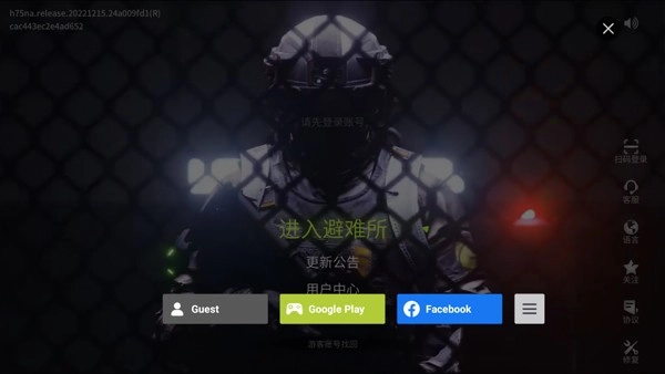 1、首先打开萤火突击国际服,点击右侧语言按钮。