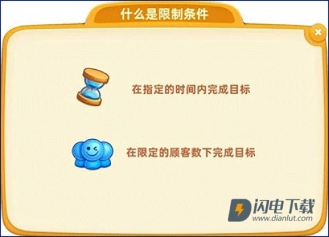 1、金币:收集顾客支付的金币,完成客户的需求,达到设定的营收金额。