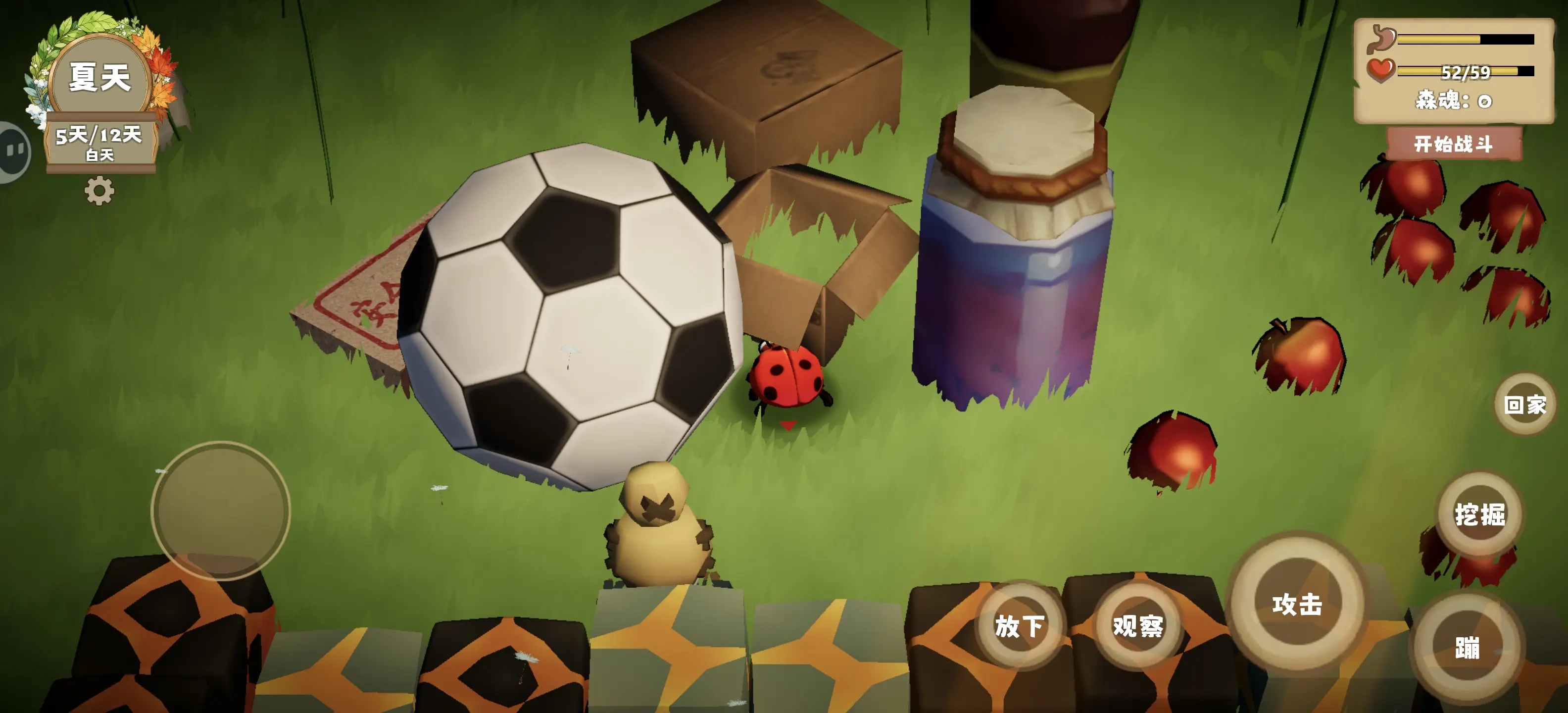 1、地图包含多种生态微环境,如落叶层、石缝区、植物根部等,每种地形藏有不同类型的物资与隐藏事件。