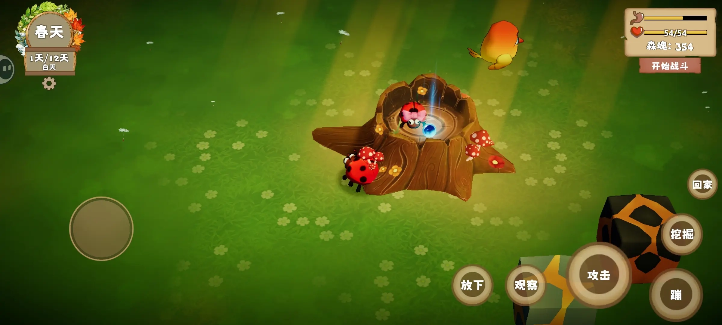 4、角色拥有基础攻击能力,能够对小型竞争生物或入侵者实施驱逐行为,战斗机制采用简化的耐力条系统,以减少复杂操作。