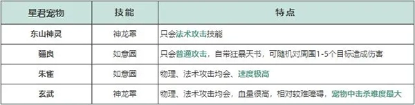 上古四大神兽包括东山神灵(青龙)、疆良(白虎)、朱雀与玄武。它们拥有天生技能神龙罩或如意圈,还掌握普通攻击技能、五系二阶法术技能以及包含降魔斩、修罗术的四阶法术技能。战斗中,神兽通常在第1回合或自身无状态时释放圈/罩类技能;若星君倒地,会优先为其恢复约50%的血量。此外,神兽的伤害、速度和防御属性会随着挑战层数的提升而逐步增强。