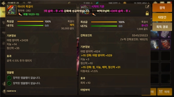 Level 1 Unique一开始谁都能拿到,强化材料也不贵,所以能毫无压力地强化到15级,我现在就用这些装备来强化。想了解详情可以点上面的链接。当然也可以不做,毕竟是个体冒险者,就算当成副角色的装备来做也没问题。