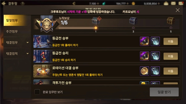 当你感到疲惫不堪时,就该着手完成功课了。要是你通过查看每日成就完成了所有作业并获得了奖励,那就得去完成紧急任务里剩下的作业。除了妄想之塔,紧急任务能随着等级提升到更高级别,所以建议把所有疲劳都用掉,尽可能地升级。既然是个人冒险者,要是有小号的话就能全部处理好。