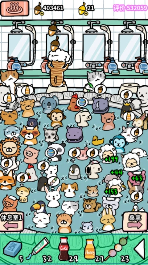 简单易上手的放置类管理游戏中,可爱的动物朋友们洗澡的场景非常治愈人心,设施越先进自动收获的橡子数量就越多,还能疯狂提升温泉评价吸引所有动物朋友们前来体验。