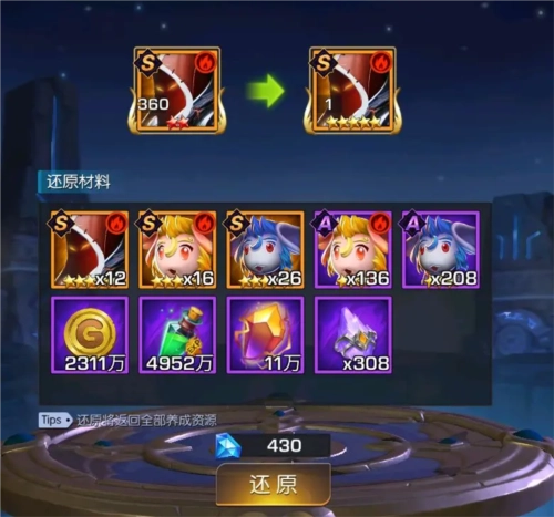 1. 对已升星的英雄进行还原,可退回初始星级并返还所有养成资源
