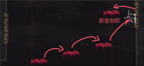 ③向右跳下来,启动回存档点的捷径。