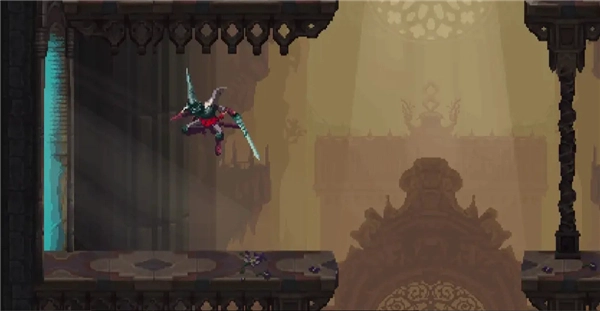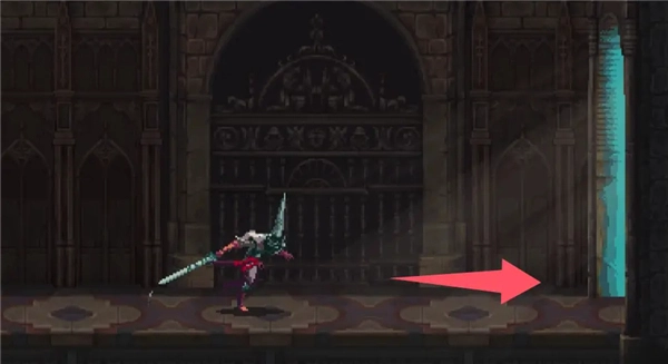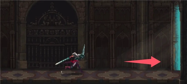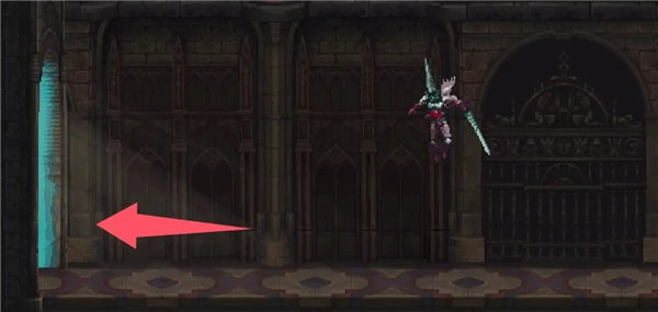 落下来后会发现右边的柱子下面有缝隙,可以滑铲穿过。