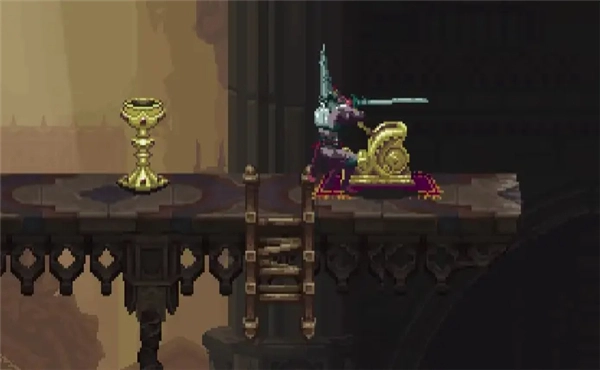 从梯子爬到下面一个平台后,走到左边再往上爬,可以去大教堂屋顶的存档点。