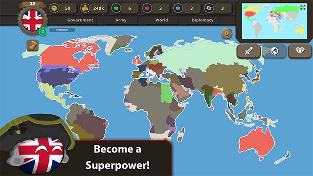6、所有国家都能选择任意国家球来担任领导!每个国家均可游玩,只是部分国家初始处于锁定状态。你可以探索地图,找到隐藏的国家球,从而解锁新的可玩国家。(若需要寻找它们的线索,可使用游戏内的“获取提示!”按钮。)