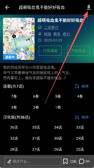 3、点击页面右上角的按钮,开始进行漫画的缓存。