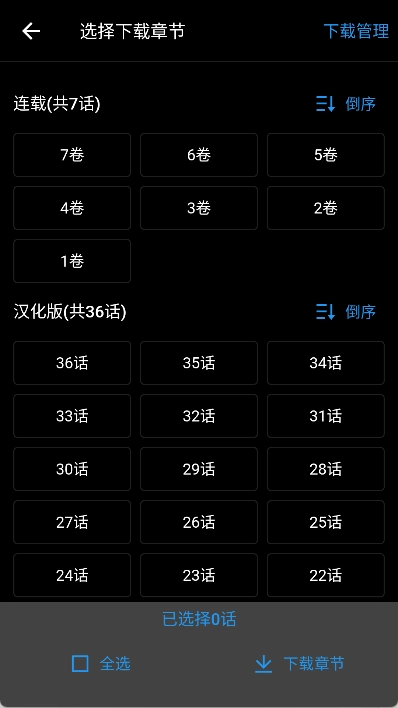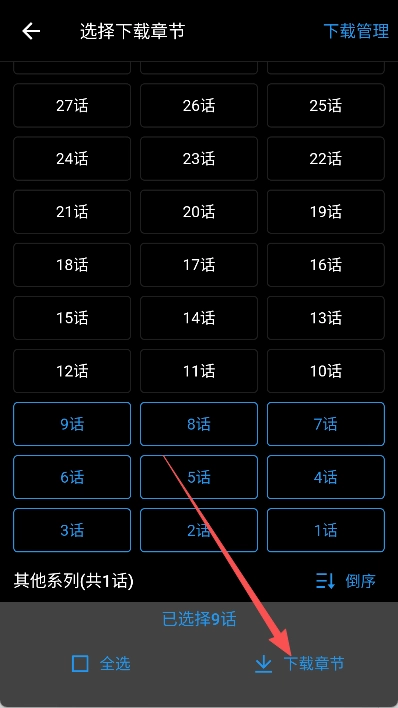 4、在弹出的章节列表中勾选需要离线阅读的漫画章节。