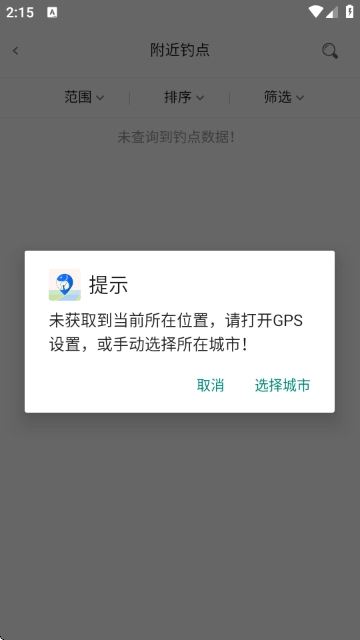 1、问:打开找不到附近钓点,定位一直不准怎么办?