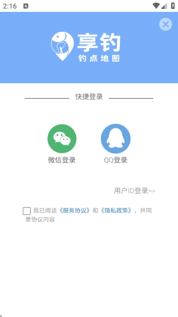 6、进入登录页面勾选协议后,可以选择微信或QQ登录完成账号的快捷登录。