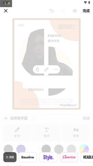 拍一张照片或从图库上传一张照片,从1000多个可用模板中挑选一个背景,轻松添加文字或图片、应用过滤器、修改对比度或使用智能照片编辑器添加标志,PhotoRoom Pro用户可在图像上应用自己的标志,将设计保存导出到资料库并分享。