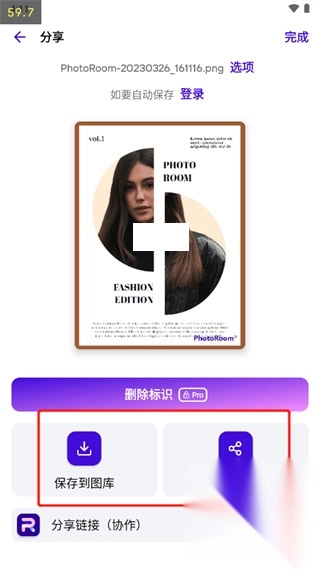 将您的精彩图片保存导出到您的资料库,并且还可以分享。