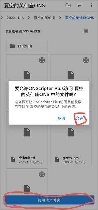 3、找到解压好的游戏文件夹,点击使用此文件夹,再点击允许。