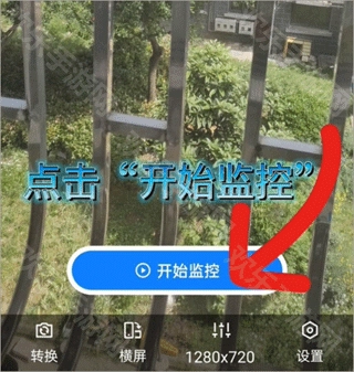 4、将镜头对准想要录制的画面,点击“开始监控”。在监控端首页选择对应的摄像头进入,就能查看监控画面。其中,点击第一个按钮可以进行对话,点击第二个按钮能够录制视频,点击第三个按钮可拍摄照片,点击第四个按钮则能切换横屏与竖屏模式。