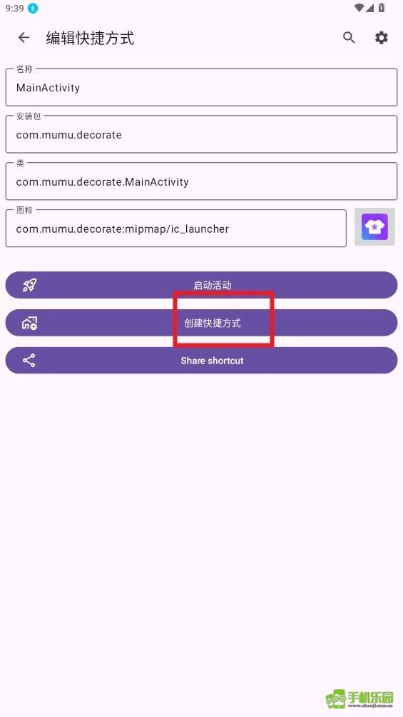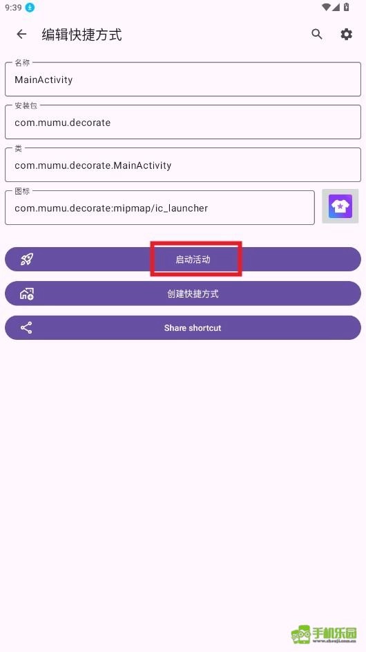 编辑快捷方式,点击启动活动。