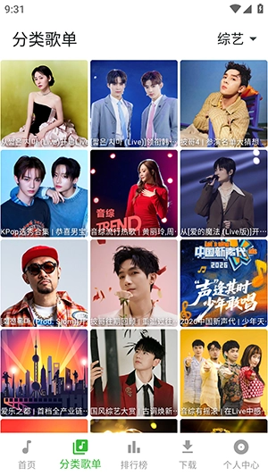 分类歌单:综艺、流行、国风等主题歌单,精准匹配不同听歌场景。