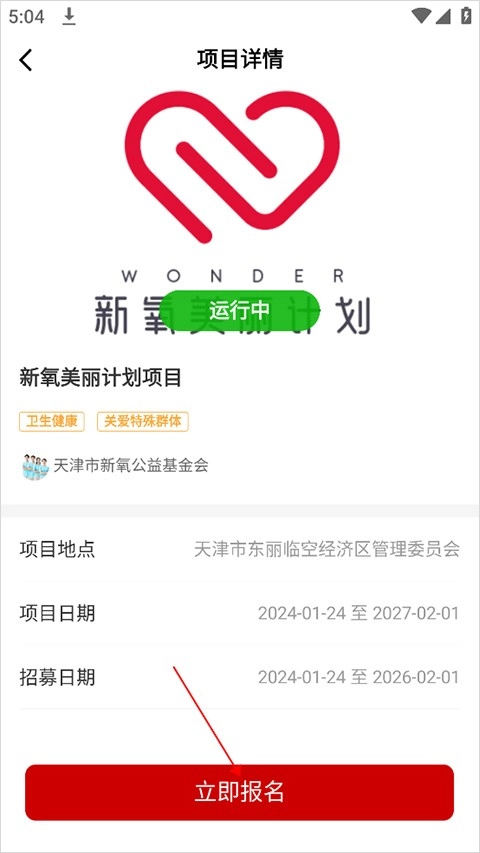 在【首页】点击【志愿项目】板块,利用筛选功能找到匹配自身的志愿活动;进入目标项目的详情页后,点击【立即报名】,选定对应岗位并完成报名流程。需留意的是,平台仅展示对外招募的项目,部分活动可能存在条件要求,需满足条件方可顺利参与。